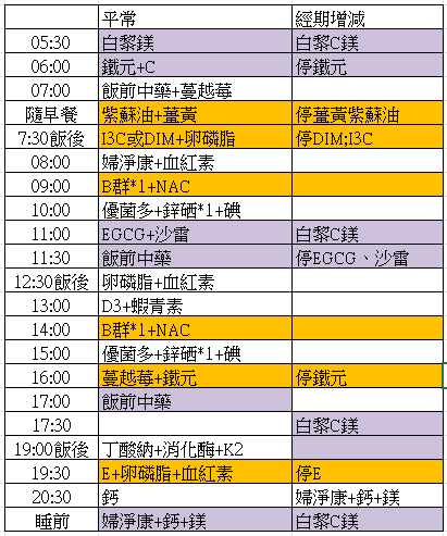 NAC(吃90天停10天)、白毛茛(只吃經期)